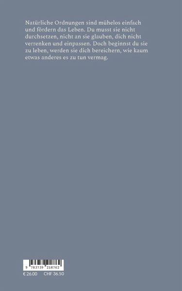 Natürliche Ordnungen sind mühelos einfach und fördern das Leben. Du musst sie nicht durchsetzen, nicht an sie glauben, dich nicht verrenken und einpassen. Doch beginnst du sie zu leben, werden sie dich bereichern, wie kaum etwas anderes es zu tun vermag.