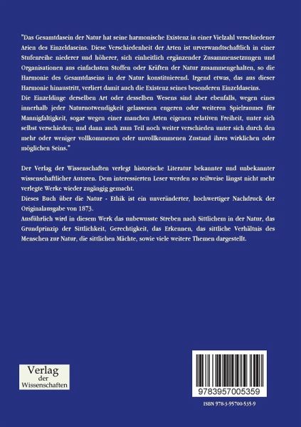 Dieses Buch über die Natur - Ethik ist ein unveränderter, hochwertiger Nachdruck der Originalausgabe von 1873.