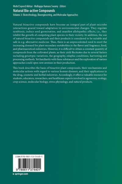 Natural bioactive compounds have become an integral part of plant-microbe interactions geared toward adaptation to environmental changes. They regulate symbiosis, induce seed germination, and manifest allelopathic effects, i.e., they inhibit the growth of competing plant species in their vicinity. In addition, the use of natural bioactive compounds and their products is considered to be suitable and safe in e.g. alternative medicine. Thus, there is an unprecedented need to meet the increasing demand for plant secondary metabolites in the flavor and fragrance, food, and pharmaceutical…mehr
