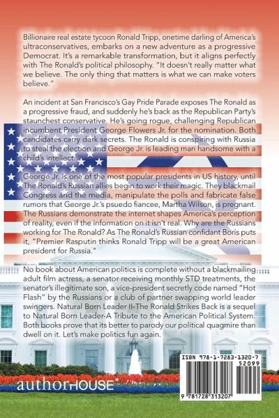 Billionaire real estate tycoon Ronald Tripp, onetime darling of America's ultraconservatives, embarks on a new adventure as a progressive Democrat. It's a remarkable transformation, but it aligns perfectly with The Ronald's political philosophy. "It doesn't really matter what we believe. The only thing that matters is what we can make voters believe." An incident at San Francisco's Gay Pride Parade exposes The Ronald as a progressive fraud, and suddenly he's back as the Republican Party's staunchest conservative. He's going rogue, challenging Republican incumbent President George Flowers Jr. for the nomination. Both candidates carry dark secrets. The Ronald is conspiring with Russia to steal the election and George Jr. is leading man handsome with a child's intellect. George Jr. is one of the most popular presidents in US history, until The Ronald's Russian allies begin to work their magic. They blackmail Congress and the media, manipulate the polls and fabricate false rumors that George Jr.'s psuedo fiancee, Martha Wilson, is pregnant. The Russians demonstrate the internet shapes America's perception of reality, even if the information on it isn't real. Why are the Russians working for The Ronald? As The Ronald's Russian confidant Boris puts it, "Premier Rasputin thinks Ronald Tripp will be a great American president for Russia." No book about American politics is complete without a blackmailing adult film actress, a senator receiving monthly STD treatments, the senator's illegitimate son, a vice-president secretly code named "Hot Flash" by the Russians or a club of partner swapping world leader swingers. Natural Born Leader II-The Ronald Strikes Back is a sequel to Natural Born Leader-A Tribute to the American Political System. Both books prove that its better to parody our political quagmire than dwell on it. Let's make politics fun again.