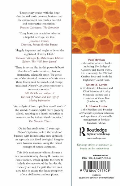 Paul Hawken is an environmentalist, educator and best-selling author of The Ecology of Commerce, The Next Economy and Growing a Business (also a TV series). Amory B Lovins is Co-founder, Chairman, and Chief Scientist of Rocky Mountain Institute and a co-author of Factor Four (Earthscan, 1997). The Centennial Issue of The Wall Street Journal named him among 39 people in the world most likely to change the course of business in the 1990s, and Time in 2009 called him one of the 100 most influential people in the world. L. Hunter Lovins is the President and Founder of Natural Capitalism Solutions. She is a founding professor of sustainable management at Presidio Graduate School, and a consultant to companies around the world. A co-author of Factor Four (Earthscan, 1997) her latest book, Climate Capitalism, will be published in 2011.