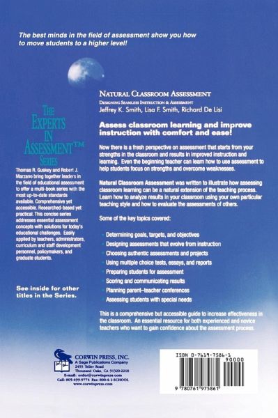 Series Editors¿ Introduction Preface Acknowledgments About the Authors 1. Determining Goals, Targets and Objectives 2. How Will Assessment Be Used? 3. Designing Assessments That Evolve From Instruction 4. Beginning the Design Process 5. Choosing Performance/Authentic Assessments/Projects 6. Using Multiple Choice and Other Objective Measures 7. Using Essays and Reports 8. Incorporating Affective and Related Ideas 9. Preparing Students for Assessments 10. Scoring and Communicating Results 11. Planning Parent-Teacher Conferences 12. Assessing Students With Special Needs 13. Seamless Integration of Goals, Instruction and Assessment References Index