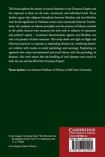 This book explores the history of natural disasters in the Ottoman Empire and the responses to them on the state, communal, and individual levels. Yaron Ayalon argues that religious boundaries between Muslims and non-Muslims were far less significant in Ottoman society than commonly believed. Furthermore, the emphasis on Islamic principles and the presence of Islamic symbols in the public domain were measures the state took to enhance its reputation and political capital - occasional discrimination of non-Muslims was only a by-product of these measures. This study sheds new light on flight and behavioral patterns in response to impending disasters by combining historical evidence with studies in social psychology and sociology. Employing an approach that mixes environmental and social history with the psychology of disasters, this work asserts that the handling of such disasters was crucial to both the rise and the fall of the Ottoman Empire.