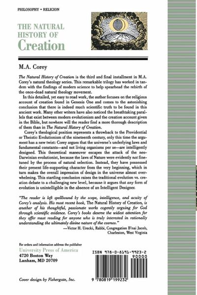 The Natural History of Creation is the third and final installment in M.A. Corey's natural theology series. This remarkable trilogy-the first of its kind in this century-has worked in tandem with the findings of modern science to help spearhead the rebirth of the natural theology movement around the world.