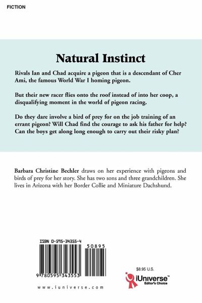 Rivals Ian and Chad acquire a pigeon that is a descendant of Cher Ami, the famous World War I pigeon. Their new racer flies onto the roof instead of into her coop, a disqualifying moment in the world of pigeon racing. Do they dare involve a bird of prey for on the job training of an errant pigeon? Will Chad find the courage to ask his father for help? Can the boys get along long enough to carry out their risky plan? This short chapter book tackles common, but intimidating, childhood problems, such as bullies, divorce, step-parents and alcoholic parents. The breezy discussion of an unusual, appealing hobby keeps this problem novel from becoming overbearingly message-driven. -Kirkus Discoveries