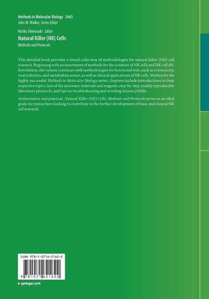 This detailed book provides a broad collection of methodologies for natural killer (NK) cell research. Beginning with an assortment of methods for the isolation of NK cells and NK cell differentiation, the volume continues with methodologies for functional tests, such as cytotoxicity, viral infection, and metabolism assays, as well as clinical applications of NK cells. Written for the highly successful Methods in Molecular Biology series, chapters include introductions to their respective topics, lists of the necessary materials and reagents, step-by-step, readily reproducible laboratory protocols, and tips on troubleshooting and avoiding known pitfalls. Authoritative and practical, Natural Killer (NK) Cells: Methods and Protocols serves as an ideal guide for researchers looking to contribute to the further development of basic and clinical NK cell research.