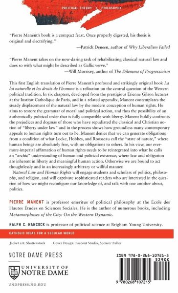 Pierre Manent is one of France's leading political philosophers. This first English translation of his profound and strikingly original book La loi naturelle et les droits de l'homme is a reflection on the central question of the Western political tradition.