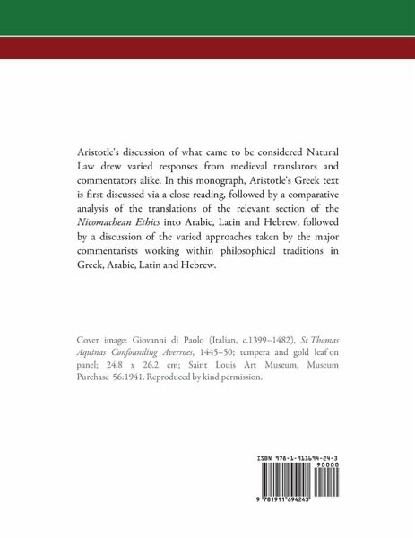 Aristotle's discussion of what came to be considered Natural Law drew varied responses from medieval translators and commentators alike. In this monograph, Aristotle's Greek text is first discussed via a close reading, followed by a comparative analysis of the translations of the relevant section of the Nicomachean Ethics into Arabic, Latin and Hebrew, followed by a discussion of the varied approaches taken by the major commentarists working within philosophical traditions in Greek, Arabic, Latin and Hebrew.
