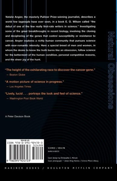 As dramatic as The Double Hex and as absorbing as The Soul of a New Machine, Natural Obsessions explores the advanced reaches of molecular biology, the nature of the human cell, and the genes that control cancer. It unforgettably portrays some of the best young scientists in the world, the rewards and discouragements of scientific research, and the very process of scientific inquiry.
