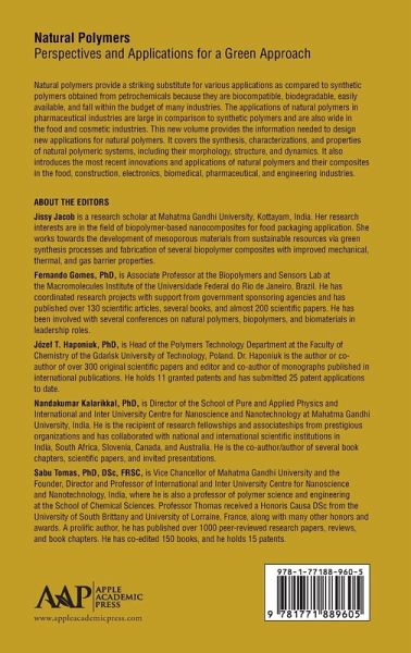 Covers the synthesis, characterizations, and properties of natural polymeric systems, including their morphology, structure, and dynamics. It also introduces the most recent innovations and applications of natural polymers and their composites in the food, construction, electronics, biomedical, pharmaceutical, and engineering industries.