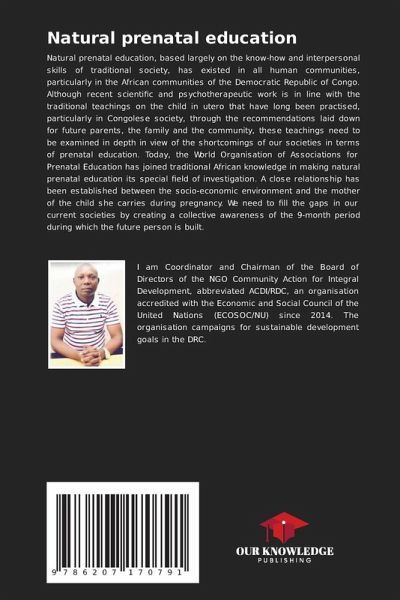 Natural prenatal education, based largely on the know-how and interpersonal skills of traditional society, has existed in all human communities, particularly in the African communities of the Democratic Republic of Congo. Although recent scientific and psychotherapeutic work is in line with the traditional teachings on the child in utero that have long been practised, particularly in Congolese society, through the recommendations laid down for future parents, the family and the community, these teachings need to be examined in depth in view of the shortcomings of our societies in terms of prenatal education. Today, the World Organisation of Associations for Prenatal Education has joined traditional African knowledge in making natural prenatal education its special field of investigation. A close relationship has been established between the socio-economic environment and the mother of the child she carries during pregnancy. We need to fill the gaps in our current societies by creating a collective awareness of the 9-month period during which the future person is built.