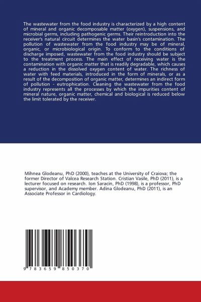 The wastewater from the food industry is characterized by a high content of mineral and organic decomposable matter (oxygen), suspensions, and microbial germs, including pathogenic germs. Their reintroduction into the receiver's natural circuit determines the water basin's contamination. The pollution of wastewater from the food industry may be of mineral, organic, or microbiological origin. To conform to the conditions of discharge imposed, wastewater from the food industry should be subject to the treatment process. The main effect of receiving water is the contamination with organic matter that is readily degradable, which causes a reduction in the dissolved oxygen content of water. The richness of water with feed materials, introduced in the form of minerals, or as a result of the decomposition of organic matter, determines an indirect form of pollution - eutrophication. Cleaning the wastewater from the food industry represents all the processes by which the impurities content of mineral nature, organic matter, chemical and biological is reduced below the limit tolerated by the receiver.