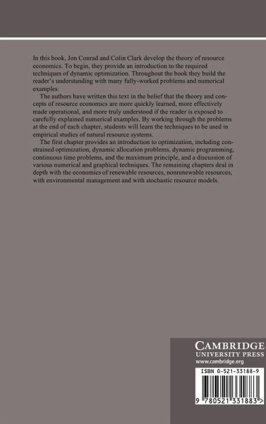 In this book, Jon Conrad and Colin Clark develop the theory of resource economics. To begin, they provide an introduction to the required techniques of dynamic optimization. Throughout the book they build the reader's understanding with many fully-worked problems and numerical examples.