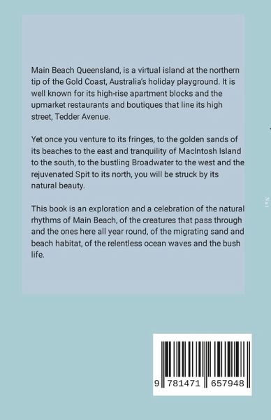 Main Beach Queensland, in Australia, is a virtual island at the northern tip of the glamorous Gold Coast, Australia's holiday playground. It is well known for its high-rise apartment blocks and the upmarket restaurants and boutiques that line its high street, Tedder Avenue. Yet once you venture to its fringes, to the golden sands of its beaches to the east and tranquility of MacIntosh Island to the south, to the bustling Broadwater to the west and the rejuvenated Spit to its north, you will be struck by its natural beauty. This book is an exploration and a celebration of the natural rhythms of Main Beach, of the creatures that pass through and the ones here all year round, of the migrating sand and beach habitat, of the relentless ocean waves and the bush life.