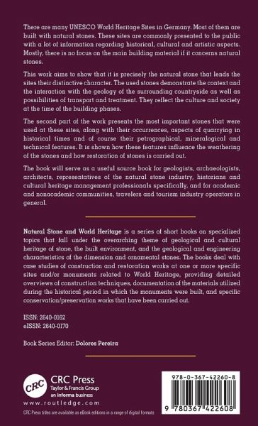 This work presents the most important stones used in several UNESCO sites in Germany, their occurrences, aspects of quarrying in historical times and of course their petrographical, mineralogical and technical features. It is shown how these features influence the weathering of the stones and how restoration of stones is carried out.