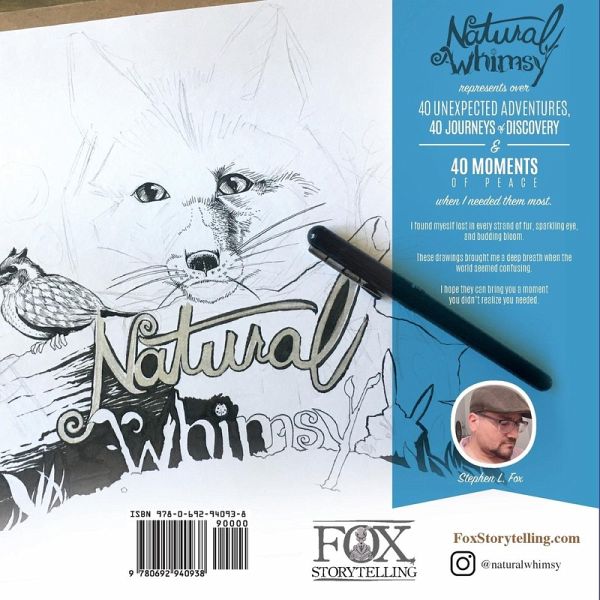 Natural Whimsy is a thoughtfully illustrated coloring book celebrating diverse natural subjects including snails, butterflies, foxes, flowers, dolphins, turtles and more. Carefully hand-drawn by pen and ink artist Stephen Fox, Natural Whimsey is a deep breath and intentional retreat into the intricate beauty found in every day nature.