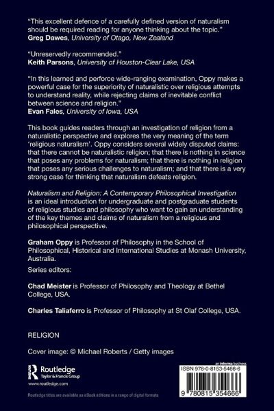This book guides readers through an investigation of religion from a naturalistic perspective and explores the very meaning of the term 'religious naturalism'. Oppy considers several widely disputed claims: that there cannot be naturalistic religion; that there is nothing in science that poses any problems for naturalism; that there is nothing in religion that poses any serious challenges to naturalism; and that there is a very strong case for thinking that naturalism defeats religion. Naturalism and Religion: A Contemporary Philosophical Investigation is an ideal introduction for undergraduate and postgraduate students of religious studies and philosophy who want to gain an understanding of the key themes and claims of naturalism from a religious and philosophical perspective.