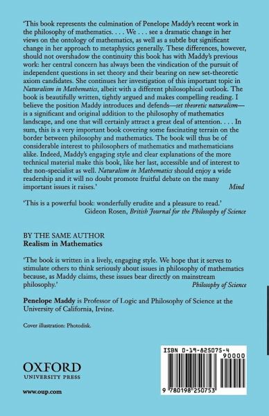 Naturalism in Mathematics investigates how the most fundamental assumptions of mathematics can be justified. One prevalent philosophical approach to the problem¿realism¿is examined and rejected in favour of another approach¿naturalism¿which attends more closely to practical considerations drawn from within mathematics itself. Penelope Maddy defines naturalism, explains the motivation for it, and shows how it can be successfully applied in set theory. Herclear, original discussion is informed by current work in both philosophy and mathematics, and will be accessible and enlightening to readers from both disciplines.