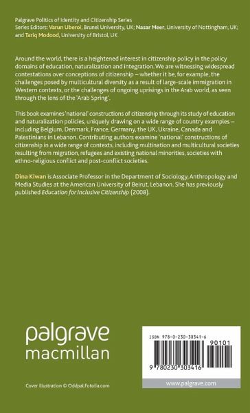 1. Introduction; Dina Kiwan 2. Learning to be 'British'? Education and Naturalisation in the UK; Dina Kiwan 3. State Paternalism and Religious Dress; Cécile Laborde 4. Diversity and Nationality: Contemporary Developments in Five European Citizenship Regimes; Nasar Meer and Tariq Modood 5. Descent, Territory, and Common Values: Redefining Citizenship in Canada; Elke Winter 6. Regional Diversity and Education for 'National' Citizenship in Ukraine: The Construction of Citizenship Identities by Borderland Youth; Antonina Tereshchenko 7. Shifting Youth Identities and Notions of 'Citizenship' in the Palestinian Diaspora: the Case of Lebanon; Kathleen Fincham 8. Conclusion; Dina Kiwan