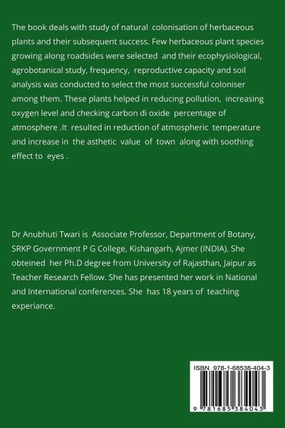 This book deals with study of herbaceous plant species which grow naturally as successful colonisers. The roadsides of jaipur are bare and cementing them will go a long way hence covering them is the need of hour. This study deals with selection of such plants which can successfully cover the roadside area. Ecologically and on environmental ground these plants form a green belt, which is an answer to increasing vehicular smoke. Along with this they provide aesthetic pleasure and soothing effect to eyes amidst the sprawling cemented cities. Dust pollution will be minimized, oxygen level of atmosphere is stabilized and carbon dioxide level is checked. Along with this noise pollution and atmospheric temperature will be reduced to some level.