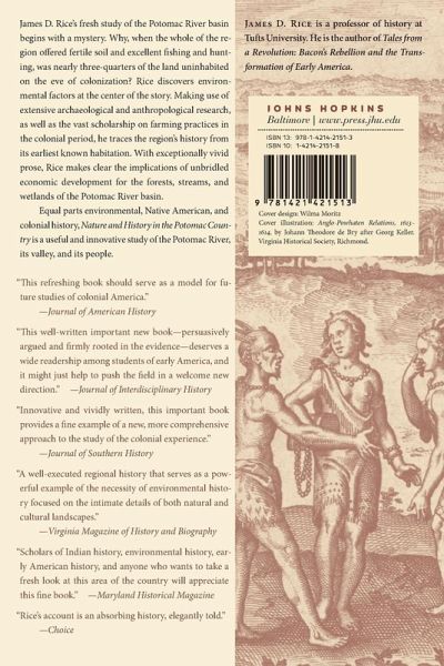< James D. Rice’s fresh study of the Potomac River basin begins with a mystery. Why, when the whole of the region offered fertile soil and excellent fishing and hunting, was nearly three-quarters of the land uninhabited on the eve of colonization? Rice wonders how the existence of this no man’s land influenced nearby Native American and, later, colonial settlements. Did it function as a commons, as a place where all were free to hunt and fish? Or was it perceived as a strange and hostile wilderness? Rice discovers environmental factors at the center of the story. Making use of extensive archaeological and anthropological research, as well as the vast scholarship on farming practices in the colonial period, he traces the region’s history from its earliest known habitation. With exceptionally vivid prose, Rice makes clear the implications of unbridled economic development for the forests, streams, and wetlands of the Potomac River basin. With what effects, Rice asks, did humankind exploit and then alter the landscape and the quality of the river’s waters? Equal parts environmental, Native American, and colonial history, Nature and History in the Potomac Country is a useful and innovative study of the Potomac River, its valley, and its people.