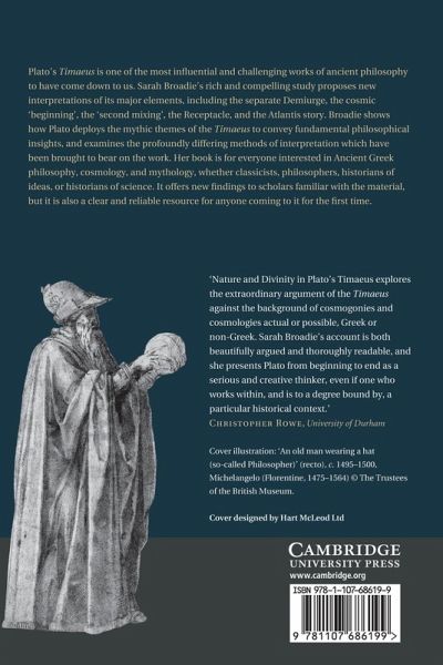 Plato's Timaeus is one of the most influential and challenging works of ancient philosophy to have come down to us. Sarah Broadie's rich and compelling study proposes new interpretations of major elements of the Timaeus, including the separate Demiurge, the cosmic 'beginning', the 'second mixing', the Receptacle and the Atlantis story. Broadie shows how Plato deploys the mythic themes of the Timaeus to convey fundamental philosophical insights and examines the profoundly differing methods of interpretation which have been brought to bear on the work. Her book is for everyone interested in Ancient Greek philosophy, cosmology and mythology, whether classicists, philosophers, historians of ideas or historians of science. It offers new findings to scholars familiar with the material, but it is also a clear and reliable resource for anyone coming to it for the first time.
