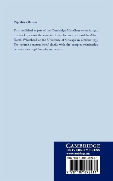 First published as part of the Cambridge Miscellany series in 1934, this book presents the content of two lectures delivered by Alfred North Whitehead at the University of Chicago in October 1933. The volume concerns itself chiefly with the complex relationship between nature, philosophy and science.