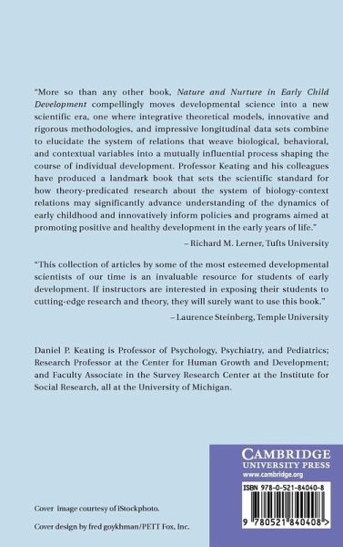 For developmental scientists, the nature versus nurture debate has been settled for some time. Neither nature nor nurture alone provides the answer. It is nature and nurture in concert that shape developmental pathways and outcomes, from health to behavior to competence. This insight has moved far beyond the assertion that both nature and nurture matter, progressing into the fascinating terrain of how they interact over the course of development. In this volume, students, practitioners, policy analysts, and others with a serious interest in human development will learn what is transpiring in this new paradigm from the developmental scientists working at the cutting edge, from neural mechanisms to population studies, and from basic laboratory science to clinical and community interventions. Early childhood development is the critical focus of this volume, because many of the important nature-nurture interactions occur then, with significant influences on lifelong developmental trajectories.