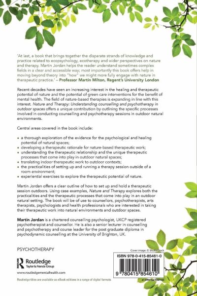 "At last, a book that brings together the disparate strands of knowledge and practice related to ecopsychology, ecotherapy and wider perspectives on nature and therapy. Martin Jordan helps the reader understand sometimes complex fields in a clear and accessible way; most importantly this book offers help in moving beyond theory into 'how' we might more fully engage with nature in therapeutic practice." - Professor Martin Milton, Regents University London