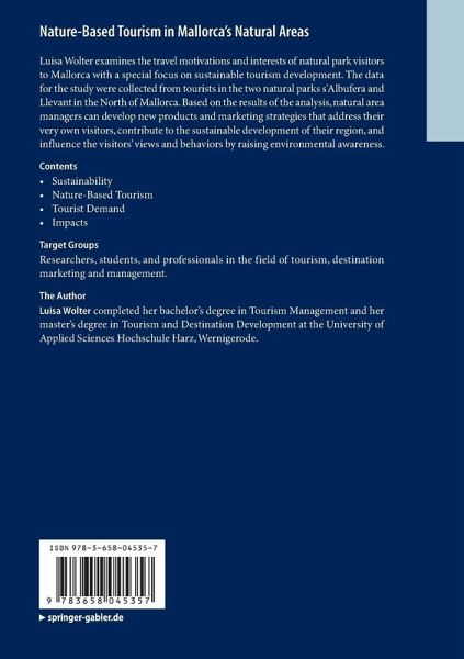 Luisa Wolter examines the travel motivations and interests of natural park visitors to Mallorca with a special focus on sustainable tourism development. The data for the study were collected from tourists in the two natural parks s' Albufera and Llevant in the North of Mallorca. Based on the results of the analysis, natural area managers can develop new products and marketing strategies that address their very own visitors, contribute to the sustainable development of their region, and influence the visitors' views and behaviors by raising environmental awareness.