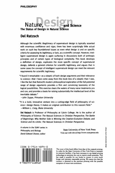 Del Ratzsch is Professor of Philosophy at Calvin College. He is the author of Philosophy of Science: The Natural Sciences in Christian Perspective; The Battle of Beginnings: Why Neither Side Is Winning the Creation-Evolution Debate; and Science & its Limits: The Natural Sciences in Christian Perspective.