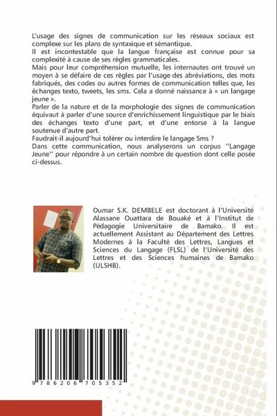 L'usage des signes de communication sur les réseaux sociaux est complexe sur les plans de syntaxique et sémantique.Il est incontestable que la langue française est connue pour sa complexité à cause de ses règles grammaticales.Mais pour leur compréhension mutuelle, les internautes ont trouvé un moyen à se défaire de ces règles par l'usage des abréviations, des mots fabriqués, des codes ou autres formes de communication telles que, les échanges texto, tweets, les sms. Cela a donné naissance à « un langage jeune ».Parler de la nature et de la morphologie des signes de communication équivaut à parler d'une source d'enrichissement linguistique par le biais des échanges texto d'une part, et d'une entorse à la langue soutenue d'autre part.Faudrait-il aujourd'hui tolérer ou interdire le langage Sms ?Dans cette communication, nous analyserons un corpus ''Langage Jeune'' pour répondre à un certain nombre de question dont celle posée ci-dessus.