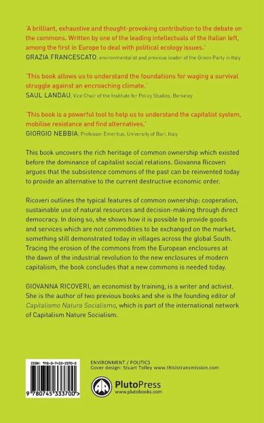 Uncovering the rich heritage of common ownership which existed before the dominance of capitalist property relations, Giovanna Ricoveri argues that the subsistence commons of the past can be reinvented today to provide an alternative to the current destructive economic order. Ricoveri outlines the distinct features of common ownership as it has existed in history through cooperatives, sustainable use of natural resources and direct democracy. In doing so, she shows how it is possible to provide goods and services which are not commodities exchanged on the capitalistic market, something still demonstrated today in village communities across the global South. Tracing the erosion of the commons from the European enclosures at the dawn of the Industrial Revolution to the new enclosures of modern capitalism, the book concludes by arguing that a new commons is needed today. It will be essential reading for activists as well as students and academics in history, politics, economics and development studies.