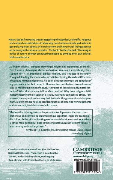 Nature, God and Humanity clarifies the task of forming an ethics of nature, thereby empowering readers to develop their own critical, faith-based ethics. Calling on original, thought-provoking analyses and arguments, Richard L. Fern frames a philosophical ethics of nature, assesses it scientifically, finds support for it in traditional biblical theism, and situates it culturally. Though defending the moral value of beliefs affirming the radical Otherness of God and human uniqueness, this book aims not to compel the adoption of any particular ethic but rather illumine the contribution diverse forms of inquiry make to an ethics of nature. How does philosophy clarify moral conviction? What does science tell us about nature? Why does religious faith matter? Rejecting the illusion of a single, rationally-compelling ethics, Fern answers these questions in a way that fosters both agreement and disagreement, allowing those holding conflicting ethics of nature to work together for the common good.