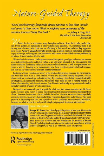Nature-Guided Therapy is an immensely practical guide for clinicians that contains over 80 therapeutic exercises and a variety of nature-based strategies to help augment clinical skills regardless of one's theoretical orientation. Also included is the author's Sensual Awareness Inventory to help access the client's experiences that may facilitate relaxation, happiness, and wellness. This book provides a fascinating read that can expand our views, challenge our therapeutic paradigms, broaden our clinical practice, and provide simple yet pragmatic treatment interventions.