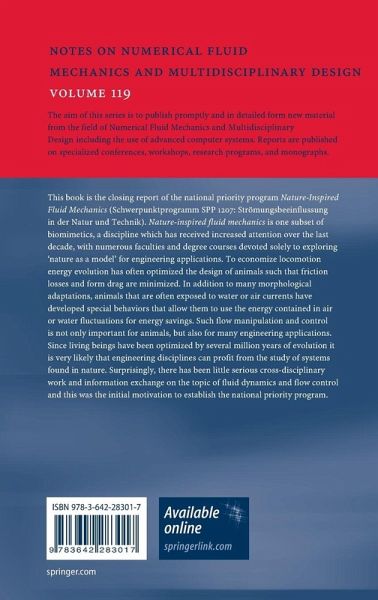 This book is the closing report of the national priority program Nature-Inspired Fluid Mechanics (Schwerpunktprogramm SPP 1207: Strömungsbeeinflussung in der Natur und Technik). Nature-inspired fluid mechanics is one subset of biomimetics, a discipline which has received increased attention over the last decade, with numerous faculties and degree courses devoted solely to exploring 'nature as a model' for engineering applications. To save locomotion energy, evolution has optimized the design of animals such that friction loss is minimized. In addition to many morphological adaptations, animals that are often exposed to water or air currents have developed special behaviors that allow them to use the energy contained in air or water fluctuations for energy savings. Such flow manipulation and control is not only important for many animals, but also for many engineering applications. Since living beings have been optimized by several million years of evolution it is verylikely that many engineering disciplines can profit from the study of systems found in nature. Curiously, there has been little serious cross-disciplinary work and information exchange on the topic of fluid dynamics and flow control and this was the initial motivation to establish this national priority program.