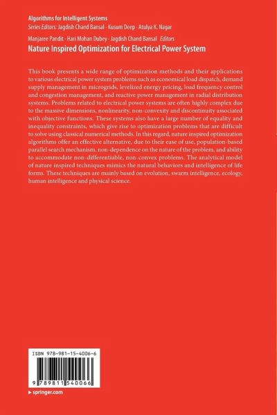 This book presents a wide range of optimization methods and their applications to various electrical power system problems such as economical load dispatch, demand supply management in microgrids, levelized energy pricing, load frequency control and congestion management, and reactive power management in radial distribution systems. Problems related to electrical power systems are often highly complex due to the massive dimensions, nonlinearity, non-convexity and discontinuity associated with objective functions. These systems also have a large number of equality and inequality constraints, which give rise to optimization problems that are difficult to solve using classical numerical methods. In this regard, nature inspired optimization algorithms offer an effective alternative, due to their ease of use, population-based parallel search mechanism, non-dependence on the nature of the problem, and ability to accommodate non-differentiable, non-convex problems. The analytical model ofnature inspired techniques mimics the natural behaviors and intelligence of life forms. These techniques are mainly based on evolution, swarm intelligence, ecology, human intelligence and physical science.