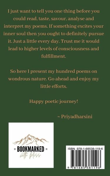 I just want to tell you one thing before you could read, taste, savour, analyse and interpret my poems. If something excites your inner soul then you ought to definitely pursue it. Just a little every day. Trust me it would lead to higher levels of consciousness and fulfillment. So here I present my hundred poems on wondrous nature. Go ahead and enjoy my little efforts. Happy poetic journey!