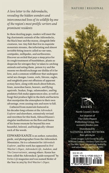 A love letter to the Adirondacks, revealing the hidden wonders and interconnected lives of its wildlife by one of the region’s most prolific and prominent residents. The Nature of the Place is storied Adirondack nature writer Edward Kanze’s invitation to slow down, smell the roses, and get to know fellow creatures with more longstanding claims to this landscape than we have. Theirs is the real internet, a web of life that weaves together an almost infinite number of threads into a fabric that’s a wonder to behold and something close to a miracle in a largely hostile universe. In these dazzling pages, readers meet the big charismatic animals of the Adirondacks, the black bear and the moose. We encounter little creatures, too, all of which lead fascinating lives while nearly unseen: tiny fish that live in exquisite mountain streams; the infuriating and almost invisible biting insects called no-see-ums; centipedes; millipedes; and earthworms. Discover an orchid that pays a steep price for its rough treatment of bumblebees; plants so desperate for nitrogen they’ve taken to catching animals and eating them; poison-ivy and the reasons why we might want to exchange our dislike of it for love; and a common wildflower that goes through serial sex changes. Loons, owls, falcons, eagles, and songbirds pour out effusions of apparent ecstasy here, along with much about bobcats, foxes, snowshoe hares, beavers, and flying squirrels. Snakes, frogs, salamanders, and big predatory fish make appearances also, as well as fungi that produce light in the dark, and bacteria that manipulate the atmosphere to their own advantage, even causing rain and snow to fall. The Nature of the Place is Kanze’s love letter to his home, the Adirondacks. Gathering materials from his decades-long column at the Adirondack Explorer and elsewhere, extensively revised and rewritten for this book, Kanze’s singular meditations on the flora and fauna of his home resonate far beyond his own beautiful, beloved, biologically vibrant neck of the woods.