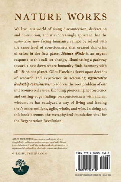 We live in a world of rising disconnect, distraction and destruction, and it's increasingly apparent that the meta-crisis now facing humanity cannot be solved with the same level of consciousness that created this crisis of crises in the first place. Nature Works is an urgent response to this call for change, illuminating a pathway toward a new dawn where humanity finds harmony with all life on our planet. Giles Hutchins draws upon decades of research and experience in activating regenerative leadership consciousness to address the root problem of our interconnected crises. Blending pioneering neuroscience and cutting-edge findings on consciousness with ancient wisdom, he has catalyzed a way of living and leading that's more resilient, agile, whole, and wise. In doing so, this book becomes the metaphysical foundation vital for the revolution of regeneration. Giles Hutchins' thought leadership as at the cutting-edge of synthesizing nature/leadership/consciousness for future-fit business. His work has been called life-changing and he is a recognized world-leader in his field of regenerative leadership.