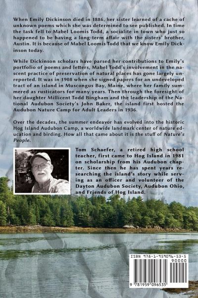 When Emily Dickinson died in 1886, her sister learned of a cache of unknown poems which she was determined to see published. In time the task fell to Mabel Loomis Todd, a socialite in town who just so happened to be having a long-term affair with the sisters' brother, Austin. It is because of Mabel Loomis Todd that we know Emily Dickinson today. While Dickinson scholars have parsed her contributions to Emily's portfolio of poems and letters, Mabel Todd's involvement in the nascent practice of preservation of natural places has gone largely unreported. It was in 1908 when she signed papers for an undeveloped tract of an island in Muscongus Bay, Maine, where her family summered as rusticators for many years. Then through the foresight of her daughter Millicent Todd Bingham and the leadership of the National Audubon Society's John Baker, the island first hosted the Audubon Nature Camp for Adult Leaders in 1936. Over the decades, the summer endeavor has evolved into the historic Hog Island Audubon Camp, a worldwide landmark center of nature education and birding. How all that came about it is the stuff of Nature's People.