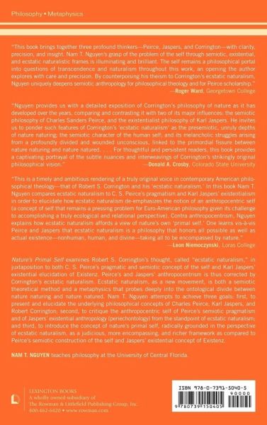 The underlying theme of this book is the analysis of Corrington’s ecstatic naturalism as a breakthrough movement that combines the fields of semiotics, theology, depth psychology, and philosophy in a new metaphysics of nature. Ecstatic naturalism provides a viable alternative to Peirce’s semiotic conception of the self and to Jaspers’ existential elucidation of Existenz.