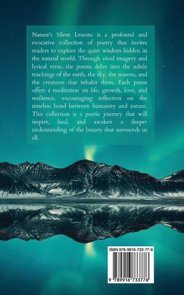 Nature's Silent Lessons is a profound and evocative collection of poetry that invites readers to explore the quiet wisdom hidden in the natural world. Through vivid imagery and lyrical verse, the poems delve into the subtle teachings of the earth, the sky, the seasons, and the creatures that inhabit them. Each poem offers a meditation on life, growth, love, and resilience, encouraging reflection on the timeless bond between humanity and nature. This collection is a poetic journey that will inspire, heal, and awaken a deeper understanding of the beauty that surrounds us all.