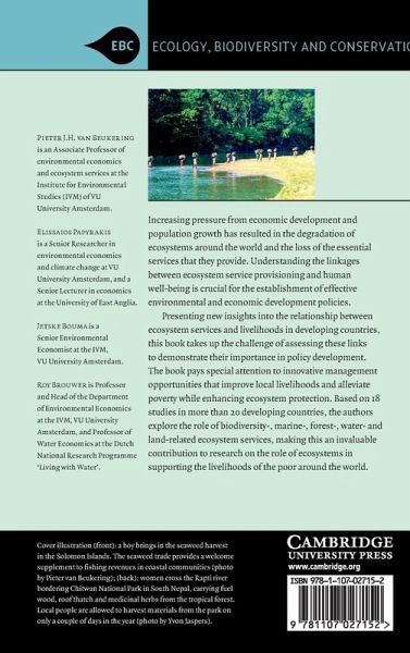 Increasing pressure from economic development and population growth has resulted in the degradation of ecosystems around the world and the loss of the essential services that they provide. Understanding the linkages between ecosystem service provisioning and human well-being is crucial for the establishment of effective environmental and economic development policy. Presenting new insights into the relationship between ecosystem services and livelihoods in developing countries, this book takes up the challenge of assessing these links to demonstrate their importance in policy development. It pays special attention to innovative management opportunities that improve local livelihoods and alleviate poverty while enhancing ecosystem protection. Based on eighteen studies in more than twenty developing countries, the authors explore the role of biodiversity-, marine-, forest-, water- and land-related ecosystem services, making this an invaluable contribution to research on the role of ecosystems in supporting the livelihoods of the poor around the world.
