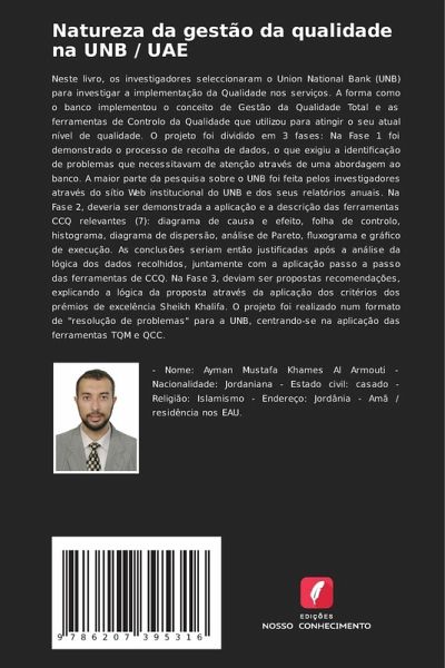 Neste livro, os investigadores seleccionaram o Union National Bank (UNB) para investigar a implementação da Qualidade nos serviços. A forma como o banco implementou o conceito de Gestão da Qualidade Total e as ferramentas de Controlo da Qualidade que utilizou para atingir o seu atual nível de qualidade. O projeto foi dividido em 3 fases: Na Fase 1 foi demonstrado o processo de recolha de dados, o que exigiu a identificação de problemas que necessitavam de atenção através de uma abordagem ao banco. A maior parte da pesquisa sobre o UNB foi feita pelos investigadores através do sítio Web institucional do UNB e dos seus relatórios anuais. Na Fase 2, deveria ser demonstrada a aplicação e a descrição das ferramentas CCQ relevantes (7): diagrama de causa e efeito, folha de controlo, histograma, diagrama de dispersão, análise de Pareto, fluxograma e gráfico de execução. As conclusões seriam então justificadas após a análise da lógica dos dados recolhidos, juntamente com a aplicação passo a passo das ferramentas de CCQ. Na Fase 3, deviam ser propostas recomendações, explicando a lógica da proposta através da aplicação dos critérios dos prémios de excelência Sheikh Khalifa. O projeto foi realizado num formato de "resolução de problemas" para a UNB, centrando-se na aplicação das ferramentas TQM e QCC.