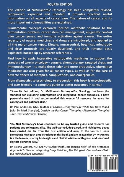 "This book, Dr. Neil McKinney's sixth on naturopathic oncology, is updated with the rewards of clinical practice, study, research and reader feedback over the last several years. Patients and integrative physicians will find it easier to navigate, more complete, and of real service. DO: use this book to be informed about your best options, and what to expect them to accomplish. THEN: get expert guidance from a licensed, accountable, health professional team experienced in treating cancer. Cancer is a life-threatening disease in most cases. You do not have the objectivity, experience or knowledge to make critical medical decisions alone. This is not just a legal disclaimer! Cancer is unforgiving of delays and poor choices"--