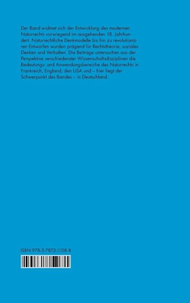 Der Band widmet sich der Entwicklung des modernen Naturrechts vorwiegend im ausgehenden 18. Jahrhundert. Naturrechtliche Denkmodelle bis hin zu revolutionären Entwürfen wurden prägend für Rechtstheorie, soziales Denken und Verhalten. Die Beiträge untersuchen aus der Perspektive verschiedenster Wissenschaftsdisziplinen die Bedeutungs- und Anwendungsbereiche des Naturrechts in Frankreich, England, den USA und ¿ hier liegt der Schwerpunkt des Bandes ¿ in Deutschland. Unveränderter Print-on-Demand-Nachdruck der Auflage von 1995.