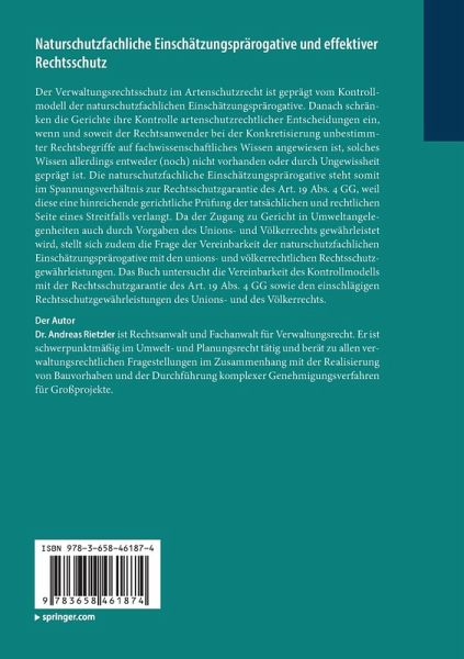 Der Verwaltungsrechtsschutz im Artenschutzrecht ist geprägt vom Kontrollmodell der naturschutzfachlichen Einschätzungsprärogative. Danach schränken die Gerichte ihre Kontrolle artenschutzrechtlicher Entscheidungen ein, wenn und soweit der Rechtsanwender bei der Konkretisierung unbestimmter Rechtsbegriffe auf fachwissenschaftliches Wissen angewiesen ist, solches Wissen allerdings entweder (noch) nicht vorhanden oder durch Ungewissheit geprägt ist. Die naturschutzfachliche Einschätzungsprärogative steht somit im Spannungsverhältnis zur Rechtsschutzgarantie des Art. 19 Abs. 4 GG, weil diese eine hinreichende gerichtliche Prüfung der tatsächlichen und rechtlichen Seite eines Streitfalls verlangt. Da der Zugang zu Gericht in Umweltangelegenheiten auch durch Vorgaben des Unions- und Völkerrechts gewährleistet wird, stellt sich zudem die Frage der Vereinbarkeit der naturschutzfachlichen Einschätzungsprärogative mit den unions- und völkerrechtlichen Rechtsschutzgewährleistungen. Das Buch untersucht die Vereinbarkeit des Kontrollmodells mit der Rechtsschutzgarantie des Art. 19 Abs. 4 GG sowie den einschlägigen Rechtsschutzgewährleistungen des Unions- und des Völkerrechts.