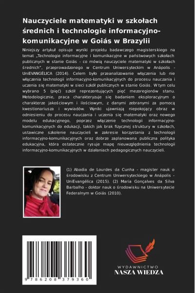 Niniejszy artyku¿ opisuje wyniki projektu badawczego magisterskiego na temat "Technologie informacyjne i komunikacyjne w pästwowych szko¿ach publicznych w stanie Goiás - co mówi¿ nauczyciele matematyki w szko¿ach ¿rednich", przeprowadzonego w Centrum Uniwersyteckim w Anápolis - UniEVANGÉLICA (2014). Celem by¿o przeanalizowanie w¿¿czenia lub nie w¿¿czenia technologii informacyjno-komunikacyjnych do procesu nauczania i uczenia si¿ matematyki w sieci szkó¿ publicznych w stanie Goiás. W tym celu wybrano 5 (pi¿¿) szkó¿ reprezentuj¿cych pi¿¿ mezoregionów stanu. Metodologicznie, praca charakteryzuje si¿ badaniem eksploracyjnym o charakterze jako¿ciowym i ilo¿ciowym, z danymi zebranymi za pomoc¿ kwestionariusza i wywiadów. Wyniki ujawniaj¿ niepokoj¿cy obraz w odniesieniu do procesu nauczania i uczenia si¿ matematyki oraz nowego modelu edukacyjnego, poprzez w¿¿czenie technologii informacyjno-komunikacyjnych do edukacji, takich jak brak fizycznej struktury w szko¿ach, ustawiczne szkolenie nauczycieli w zakresie korzystania z technologii informacyjno-komunikacyjnych oraz dobrze zaplanowana publiczna polityka edukacyjna, która ostatecznie rysuje map¿ nieuwzgl¿dnienia technologii informacyjno-komunikacyjnych w dziäaniach pedagogicznych nauczycieli.