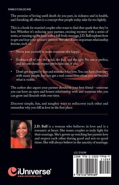 This is a book to help married couples find that missing spark in their relationship. A way to help them find imaginative ways to come back together to make their marriage work again or on a new level. Simple, fun, and naughty ways to rediscover each other and remember why they fell in love in the first place.